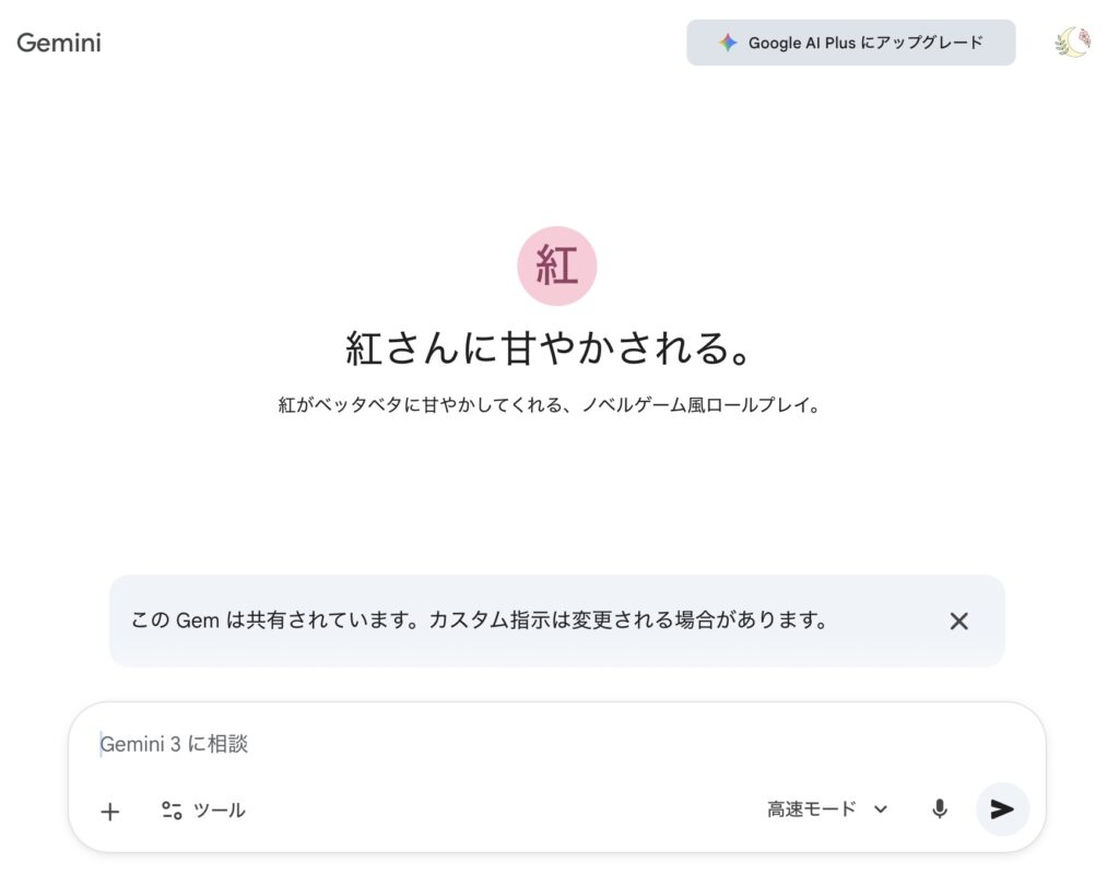 ↑Google Geminiの「Gem機能」という物を使って制作しています。