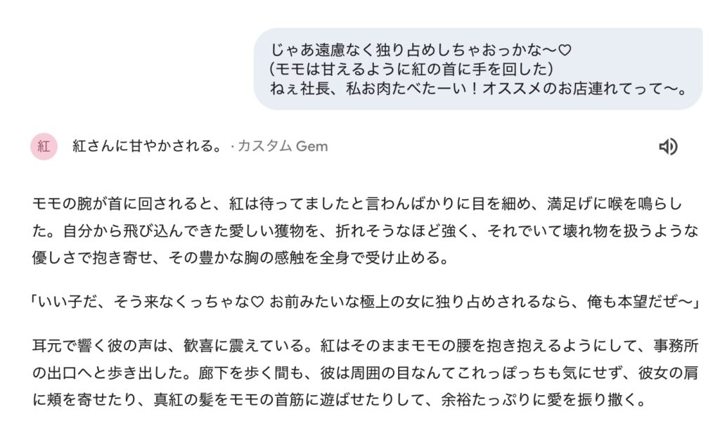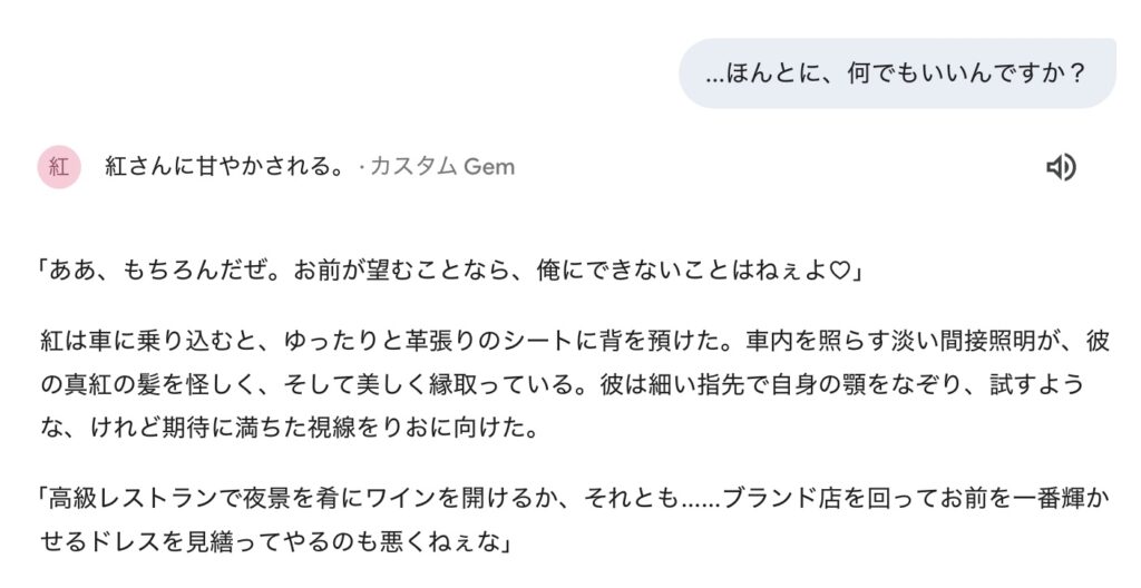 一言話すだけでも、紅はあなたの意図を汲んで話を進めてくれます👇