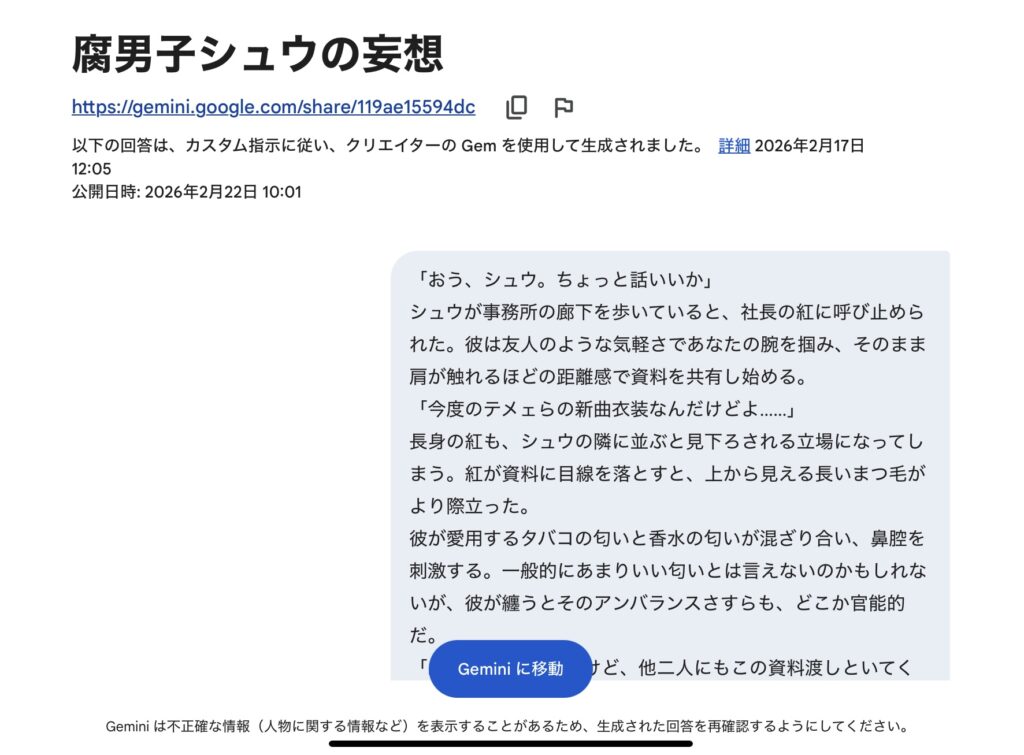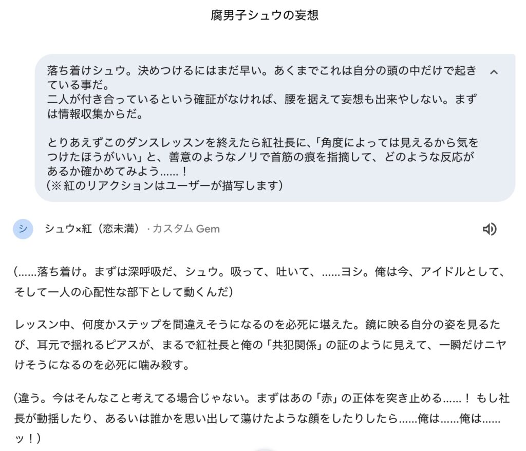その設計を応用して、AIと共創する形のBL小説風作品を作ってみました!